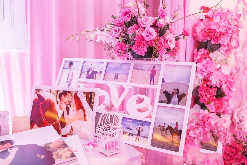 特色签到台布置(含新人照片摆台3张,花艺两瓶)